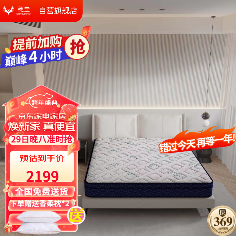 穗宝(SYMBOL)椰棕床垫软硬双面环保乳胶整网弹簧床垫 恒感5G·芯悦 1.2米*2米价格:3299.00元!