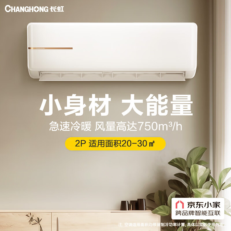 4、长虹空调可以军工品质,值得信赖。双十一抢购的,性价比非常高。变频一级能效,非常满意!26的一匹挂机,小房间使用足够了,外观也满意!
