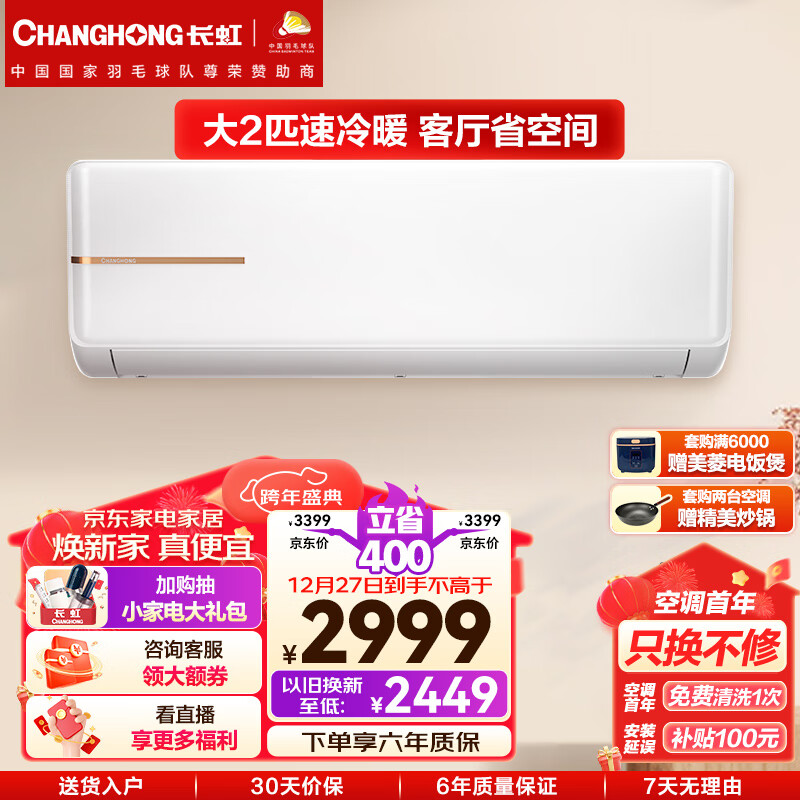 长虹(CHANGHONG)大2匹 升级新能效 精准控温自清洁 空调挂机KFR-51GW/ZDTCW2+R3以旧换新价格:2999.00元!