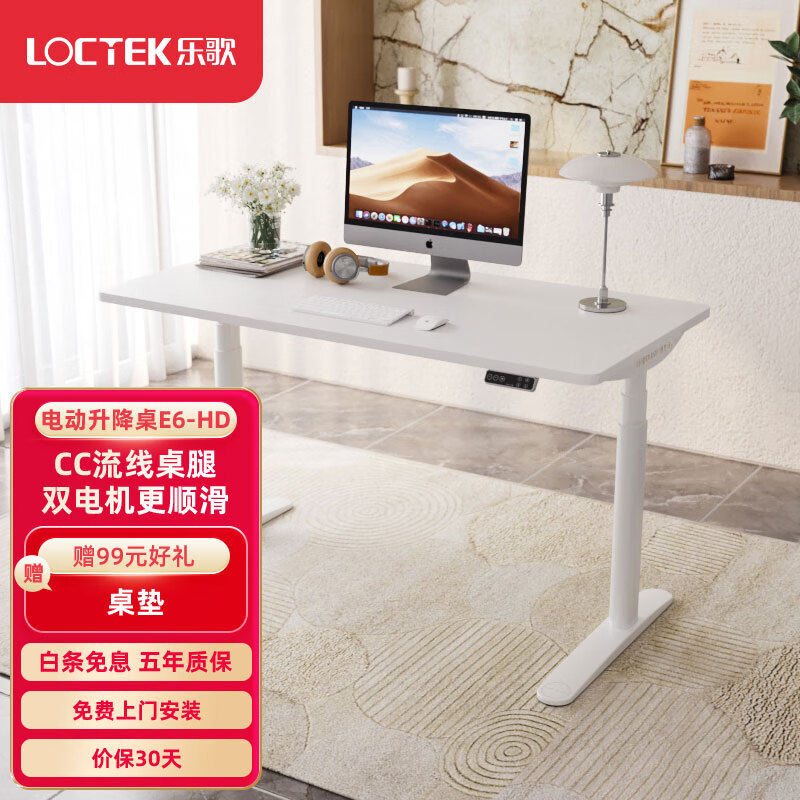 乐歌电动升降桌电脑桌站立办公学习桌写字桌书桌 E6-HD/1.4m白色套装价格:3858.00元!