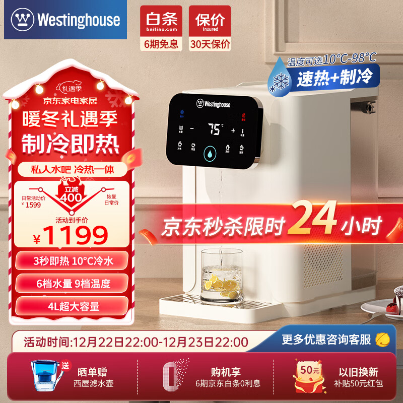 西屋(Westinghouse)台式即热式饮水机 小型饮水机家用 办公台式客厅台面即热饮水机 桌面茶吧机 WFH40-W2S制冷饮水机价格:1599.00元!