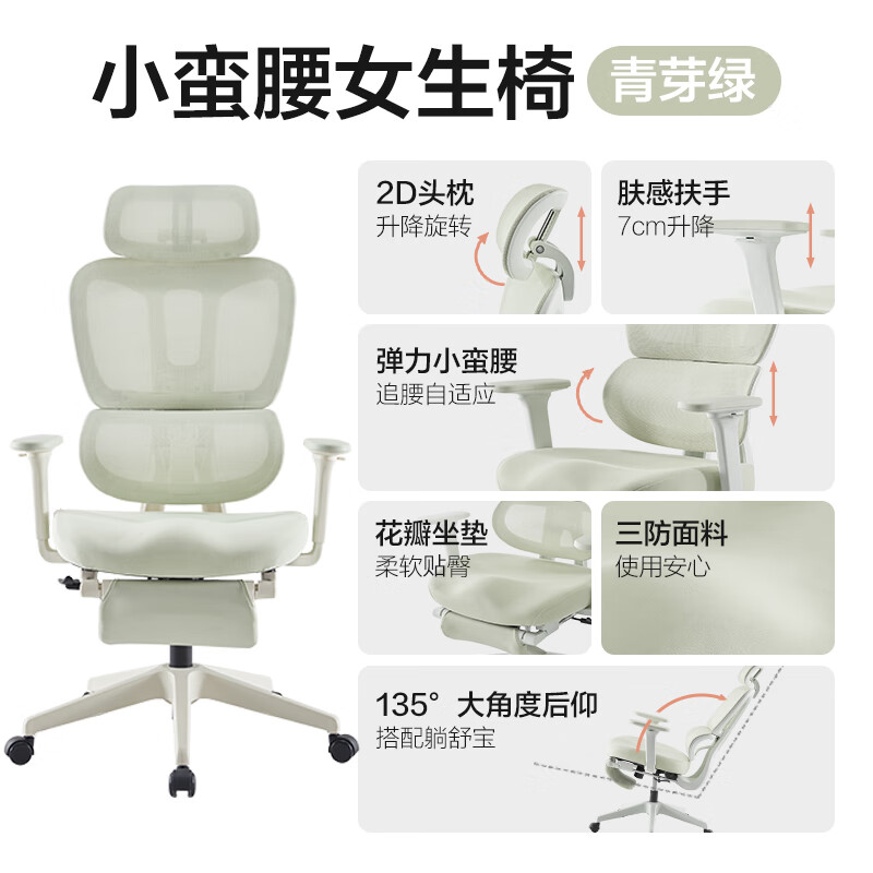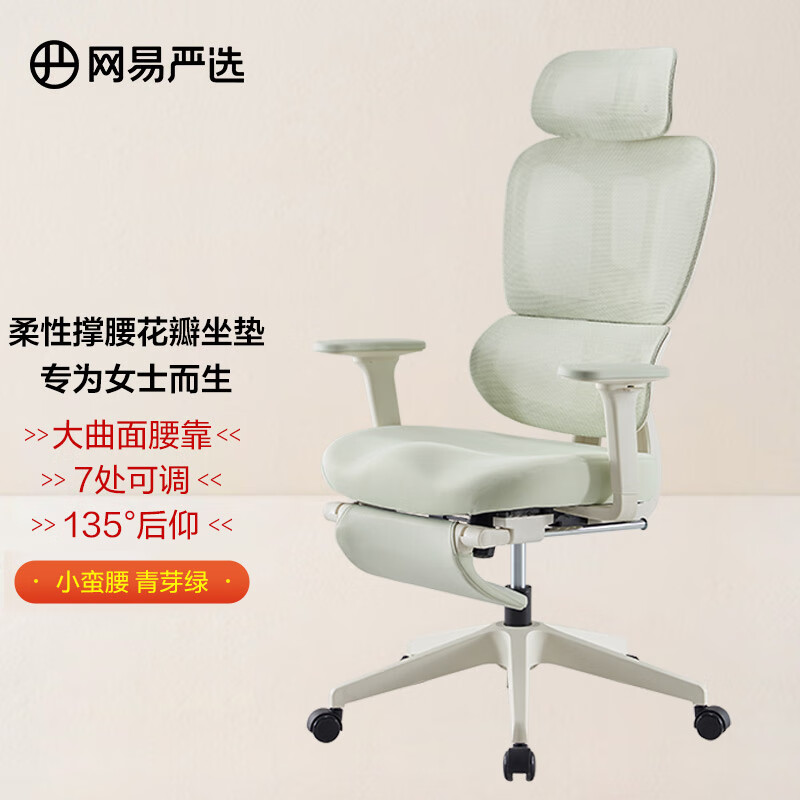 网易严选小蛮腰女生椅青芽绿 人体工学电脑椅办公电竞老板椅会议学习座椅价格:1099.00元!