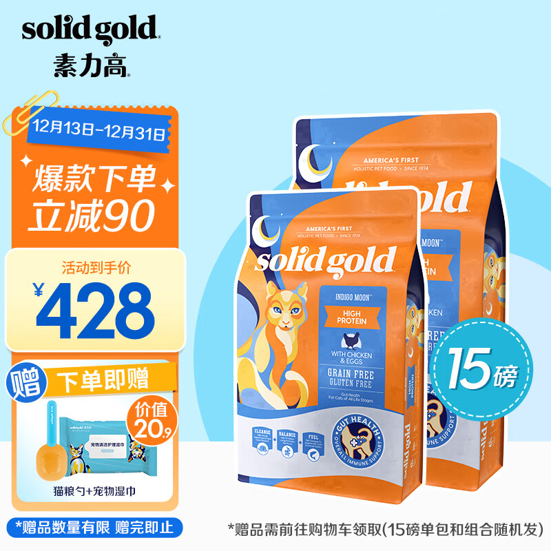 素力高(SolidGold)进口高蛋白 金装金素鸡 成猫幼猫全价猫粮 15磅/6.8kg价格:398.00元!