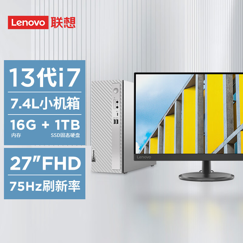 联想(Lenovo)天逸510S 个人商务台式机电脑主机(13代i7-13700 16G 1TB SSD wifi win11 )27英寸套机价格:6199.00元!