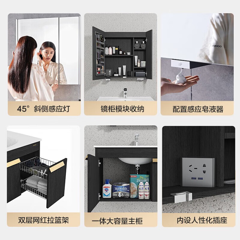 九牧(JOMOO)浴室柜 陶瓷一体盆卫生间智能轻奢悬挂式 金钻黑A2705-11GG-4价格:3449.00元!