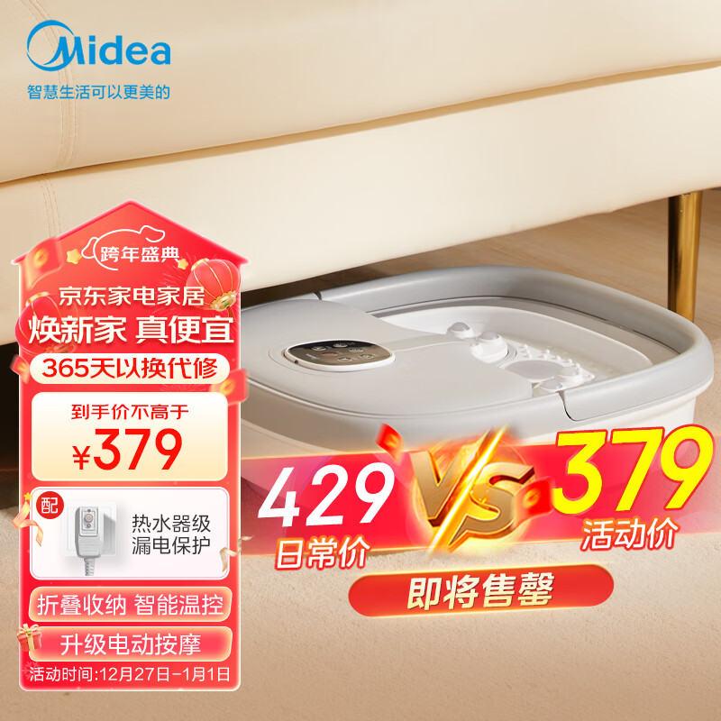 美的(Midea)折叠足浴盆自动按摩泡脚桶泡脚盆洗脚盆送男女朋友礼物 送父母礼物MK-AJ0301价格:429.00元!