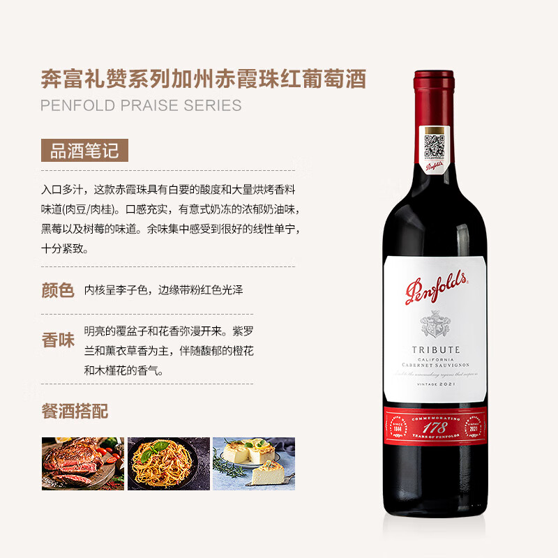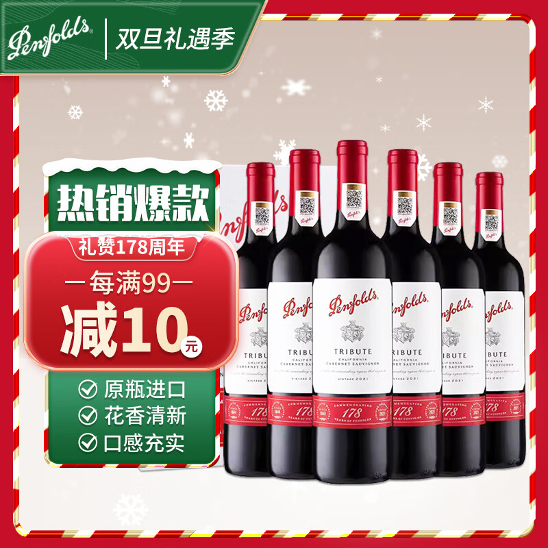 奔富(Penfolds)礼赞系列178周年加州赤霞珠红葡萄酒750ml *6 整箱装价格:2668.00元!