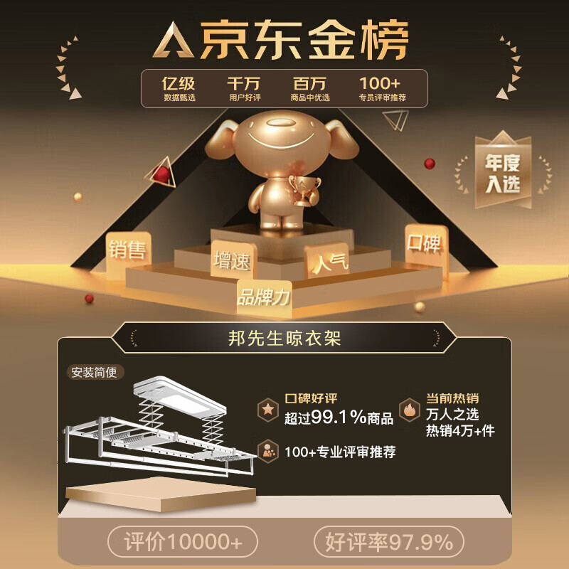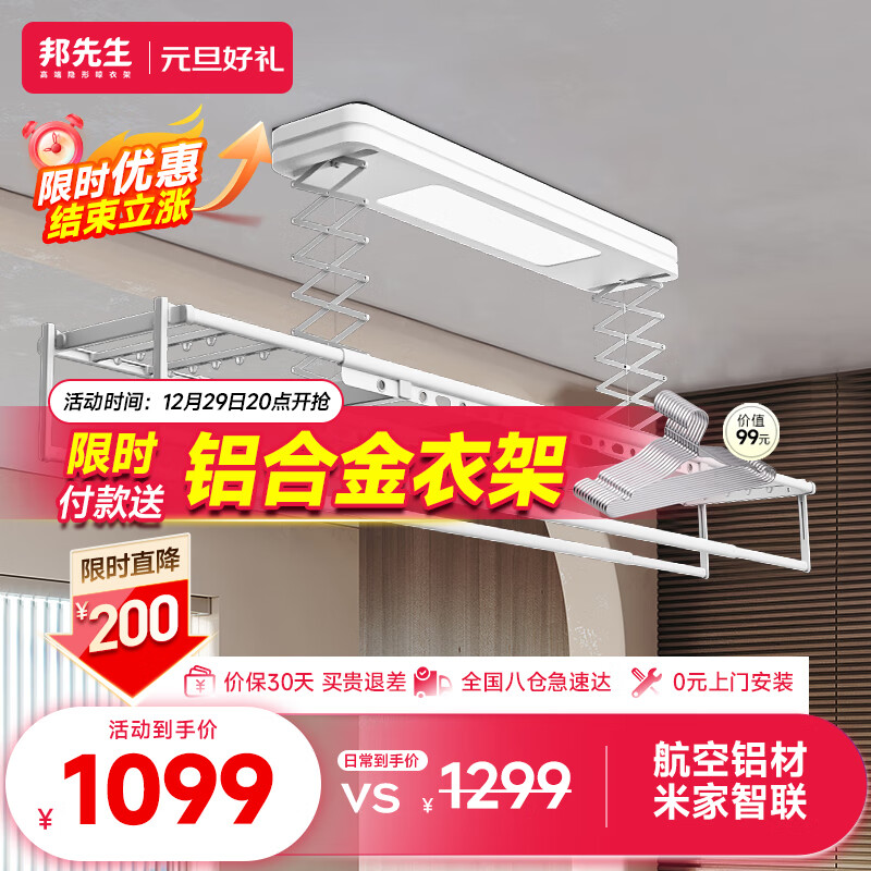 邦先生智能电动晾衣架阳台全自动升降小户型米家用凉衣杆晒衣机M50S米家价格:1299.00元!