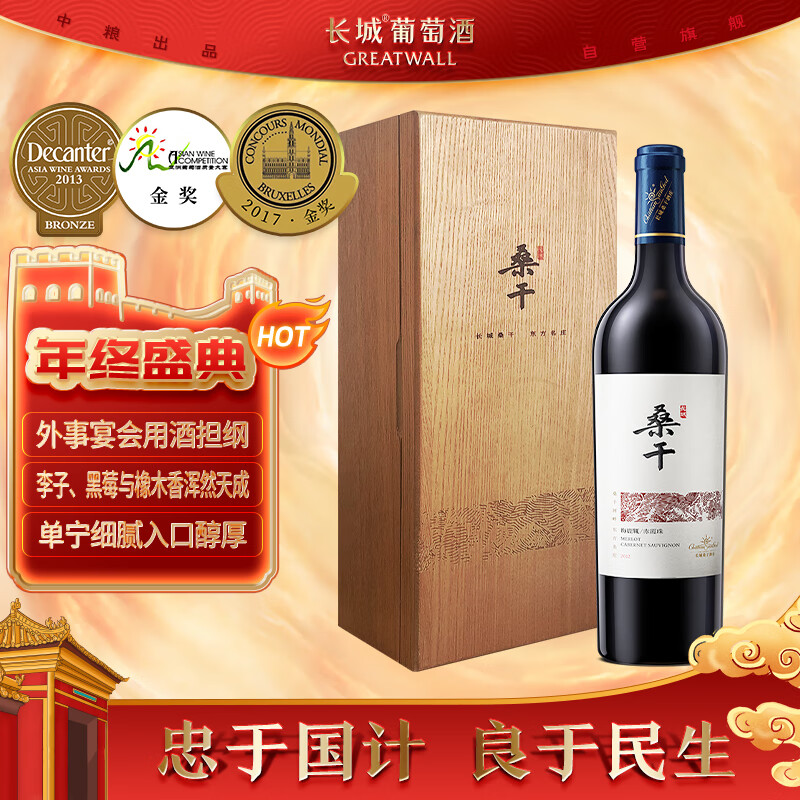长城 桑干酒庄 梅鹿辄赤霞珠干红葡萄酒 木盒 750ml 单瓶装价格:860.00元!