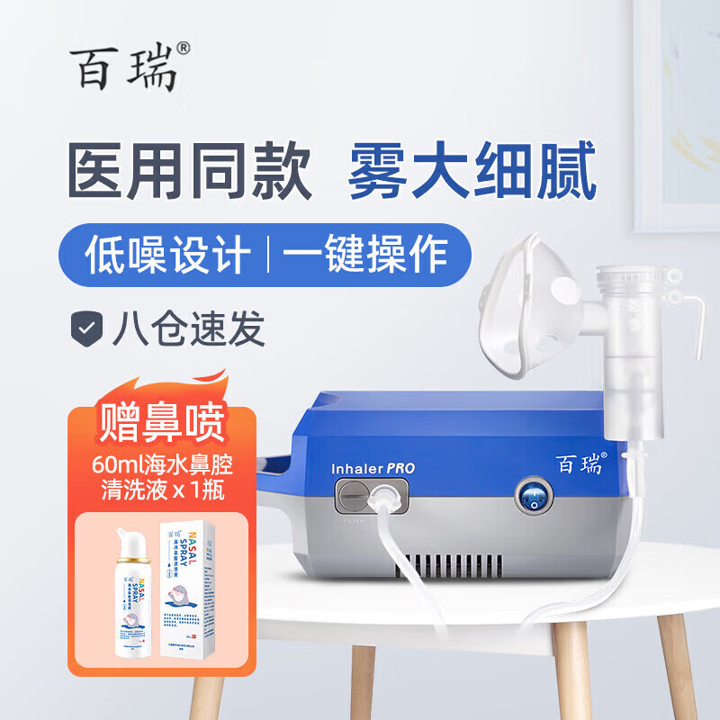 百瑞 雾化器雾化机儿童成人家用压缩式雾化泵雾化仪 Inhaler PRO 蓝灰色BRM-075Ⅱ价格:1580.00元!