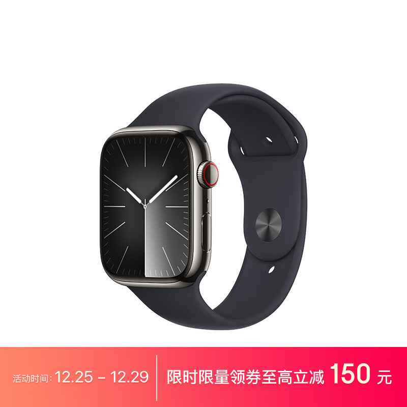 Apple Watch Series 9 智能手表GPS+蜂窝款45毫米石墨色不锈钢表壳午夜色运动型表带S/M电话手表S9 MRPN3CH/A价格:6199.00元!