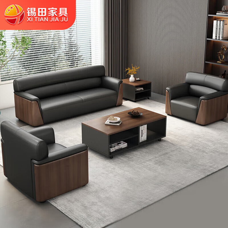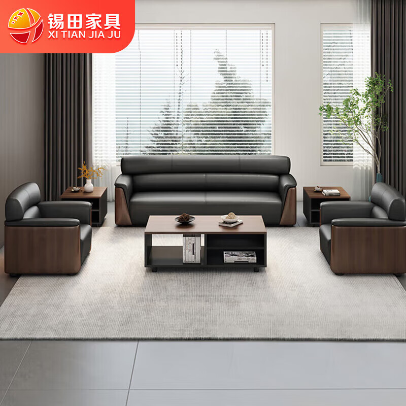 锡田家具办公沙发现代简约商务会客沙发茶几组合 3+1+1(牛皮)价格:6800.00元!