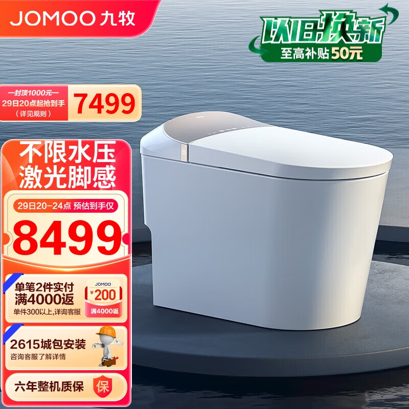 九牧(JOMOO)智能马桶一体机带水箱泡沫盾自动翻盖智能坐便器ZS900-305坑距价格:10199.00元!