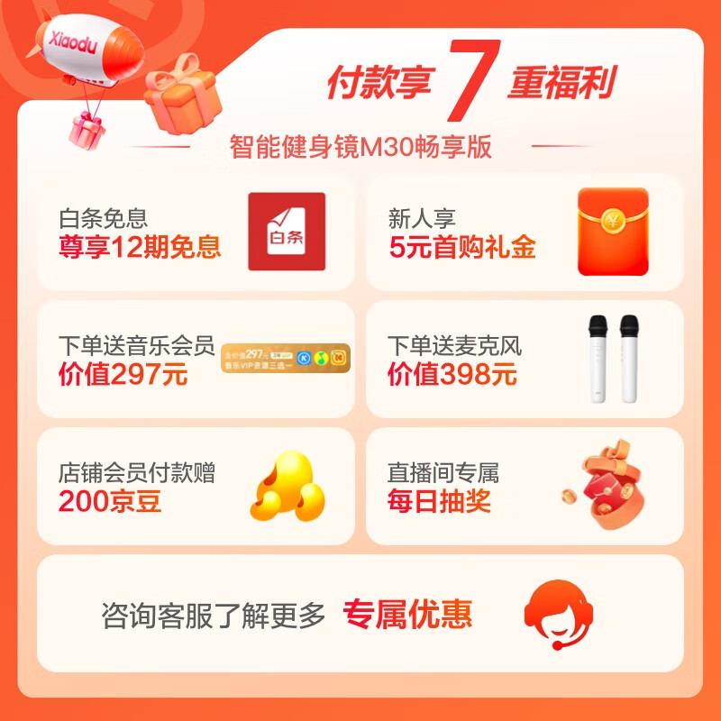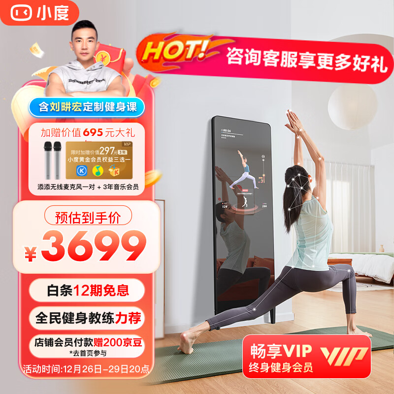 小度添添智能健身镜 M30 健身畅享版 健身镜私教 运动镜 家庭KTV 魔镜 沉浸式居家健身 含终身会员 新年礼物价格:3699.00元!
