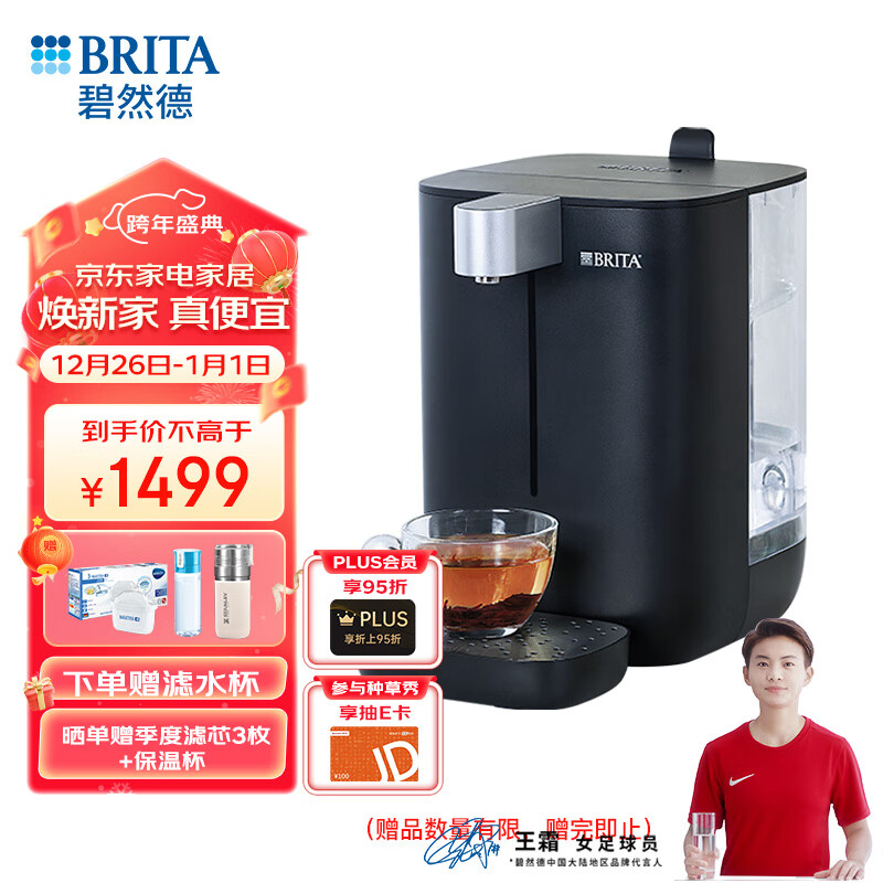 碧然德(BRITA) 台面净饮机即热直饮调温免安装台式净水器 黑色 智能即热饮水机价格:1629.00元!
