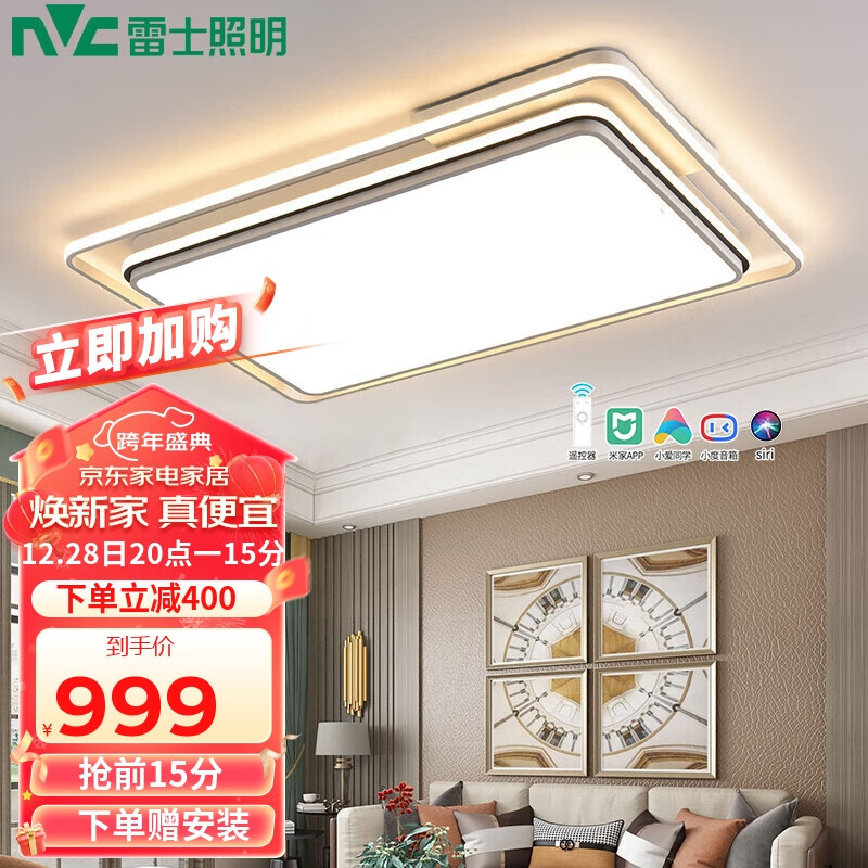 雷士照明(NVC)LED吸顶客厅大灯北欧现代卧室书房灯具智能调控124w叠舞价格:1399.00元!