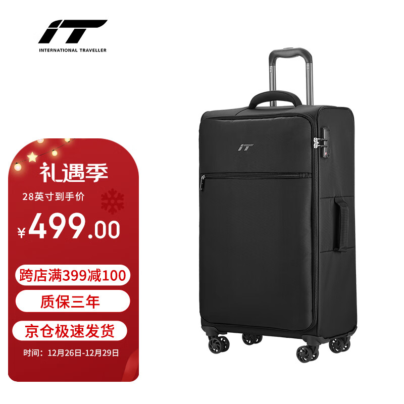 INTERNATIonAL TRAVELLER英国IT拉杆箱托运旅行箱万向轮超轻行李箱28英寸软布箱1191黑色价格:599.00元!