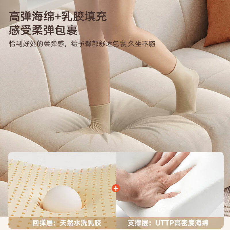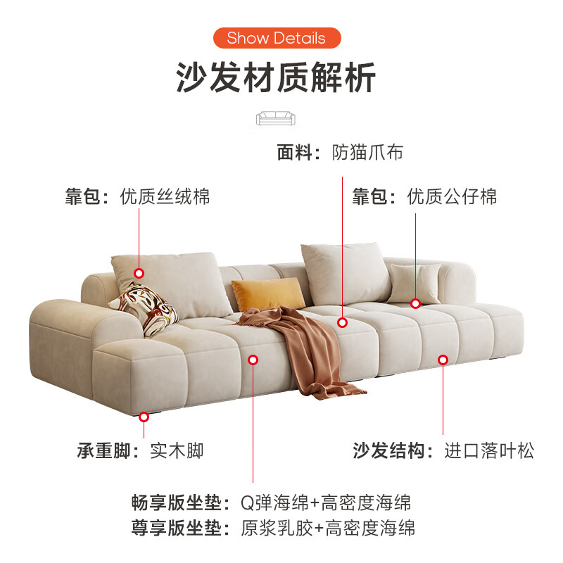 品族轻奢防猫抓沙发北欧风奶油风方块沙发组合小户型直排客厅沙发价格:3678.00元!