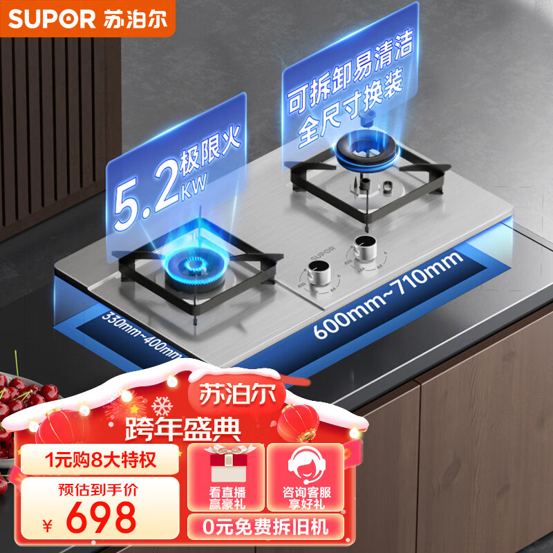 苏泊尔(SUPOR)燃气灶双灶家用 液化气双灶具5.2kW升级猛火 易洁耐用不锈钢面板 台嵌两用灶具 DS37液价格:698.00元!