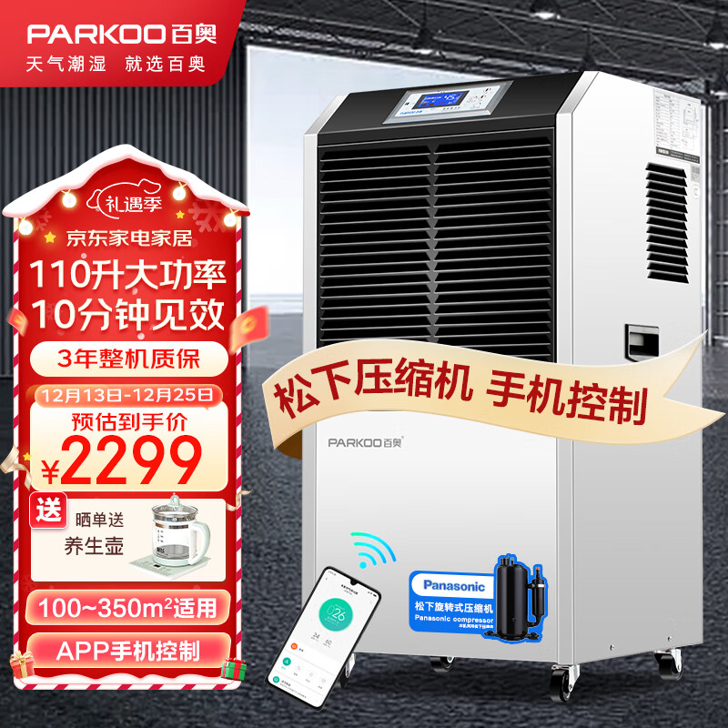 百奥(PARKOO)除湿机/抽湿机 APP手机遥控 150-350平方仓库除湿器地下室别墅商用工业吸湿器YDA-8138EB价格:2599.00元!