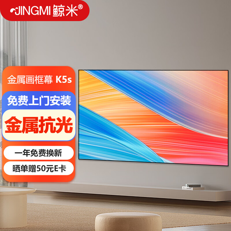 鲸米(JINGMI)投影幕布K5S金属抗光幕布200英寸16:9超窄边家用客厅卧室壁挂式投影仪屏幕价格:3599.00元!