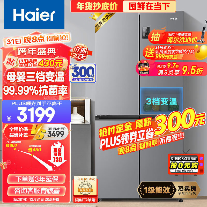 海尔(Haier)465升十字对开双开四开多门电冰箱家用无霜一级能变频效节能超薄嵌入式超大容量BCD-465WGHTDE9S9价格:3499.00元!