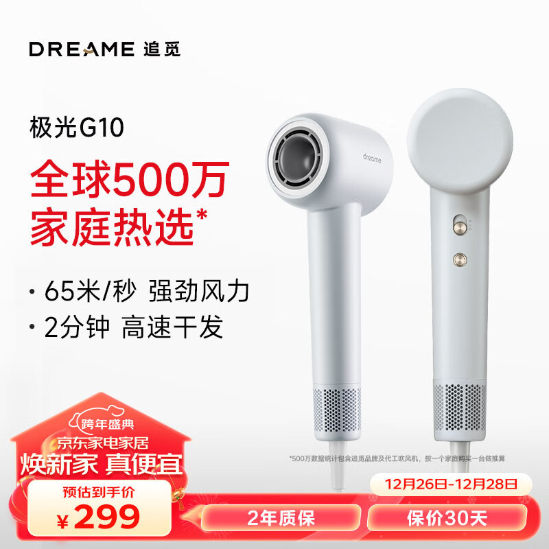 追觅极光G10高速吹风机家用电吹风大功率速干吹风机负离子大风力低噪音 灰色价格:499.00元!