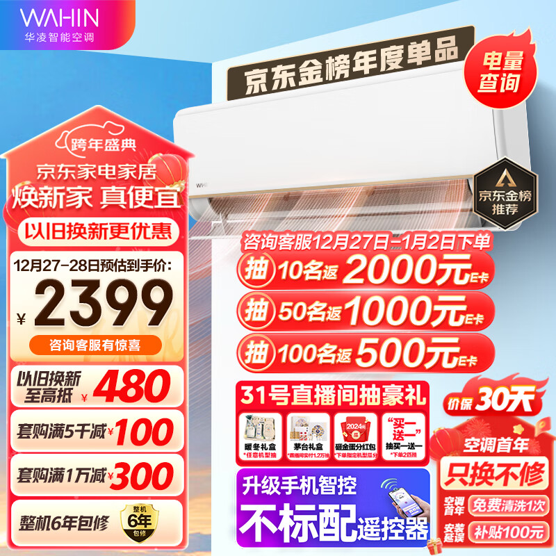华凌空调新一级能效变频冷暖超大风口1.5匹客厅卧室空调挂机升级电量查询 KFR-35GW/N8HE1Pro以旧换新价格:2359.00元!