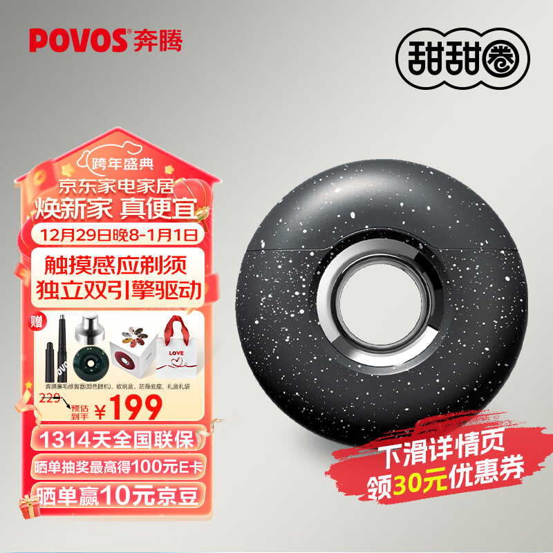 奔腾(POVOS)甜甜圈电动剃须刀 小巧便携刮胡须刀须刨智能T000星空灰 生日新年礼送男友送老公价格:249.00元!
