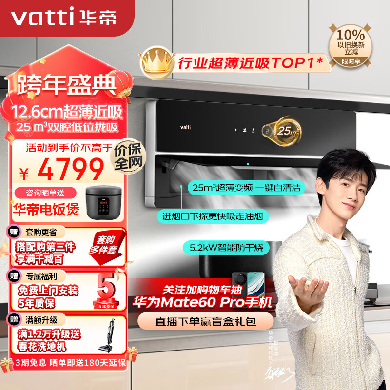 华帝(VATTI)抽油烟机超薄近吸理想家X6家用变频大吸力烟机防干烧燃气灶具烟灶套装25风量自动清洗i11210天然气价格:4799.00元!