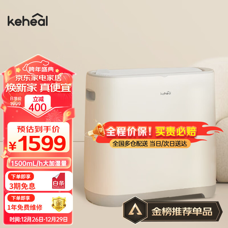 KEHEAL科西无雾加湿器空气净化一体机卧室家用客厅办公室婴儿落地式大容量大面积1500mL/s除菌增湿 W2价格:1599.00元!