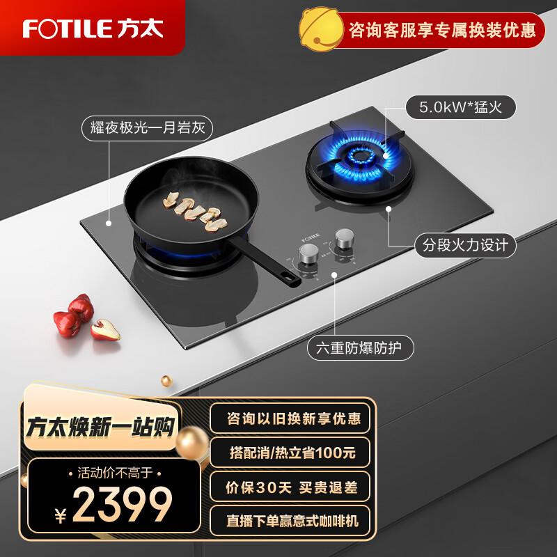 方太燃气灶(天然气)家用嵌入式燃气灶 换装灶具 5.0kW*大火力01-THF1-G 月岩灰价格:2399.00元!