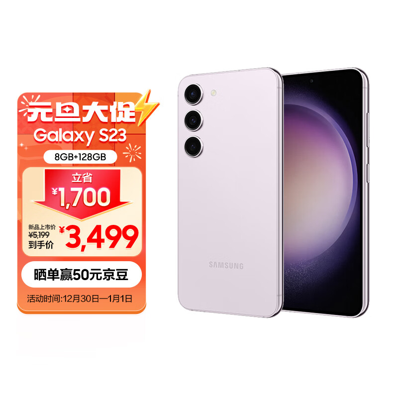 三星 SAMSUNG Galaxy S23 超视觉夜拍 可持续性设计 超亮全视护眼屏 8GB+128GB 悠雾紫 5G手机价格:3499.00元!