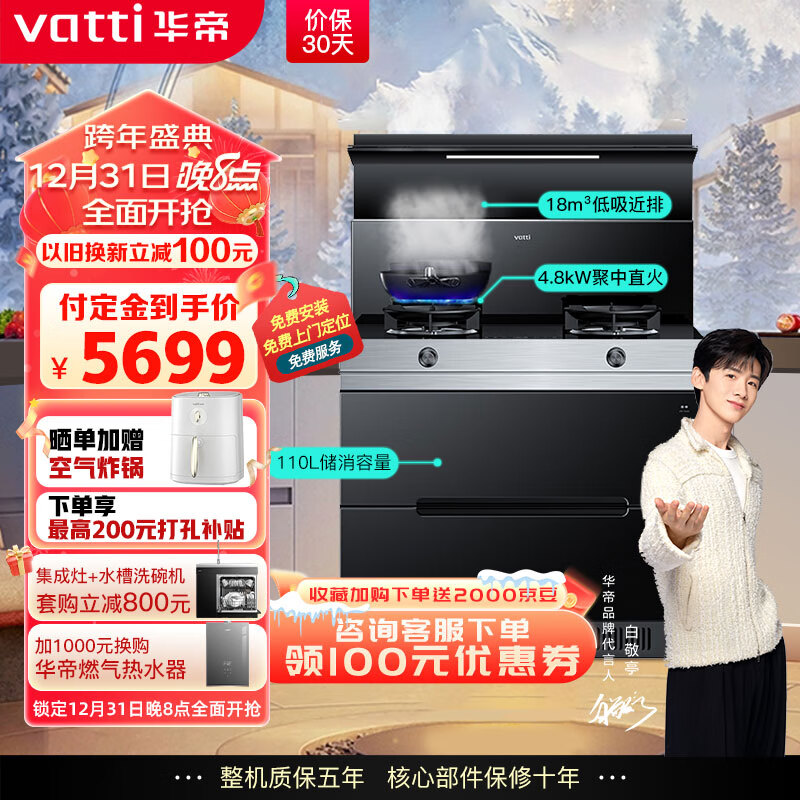 华帝(VATTI)集成灶消毒柜 集成一体灶 家用烘干柜 一键清洗 灶具定时 超大置物台 抽烟机燃气灶 i3023G液化气价格:5699.00元!