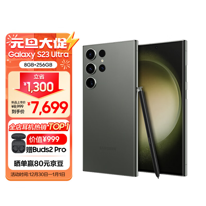 三星 SAMSUNG Galaxy S23 Ultra 超视觉夜拍 稳劲性能 大屏S Pen书写 8GB+256GB 悠野绿 5G手机价格:7699.00元!