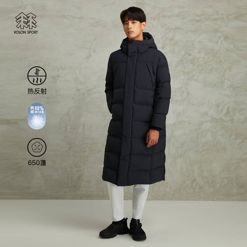 KOLON SPORT可隆情侣款户外防风长款重量鹅绒夹克羽绒服 黑色BK XS价格:3600.00元!