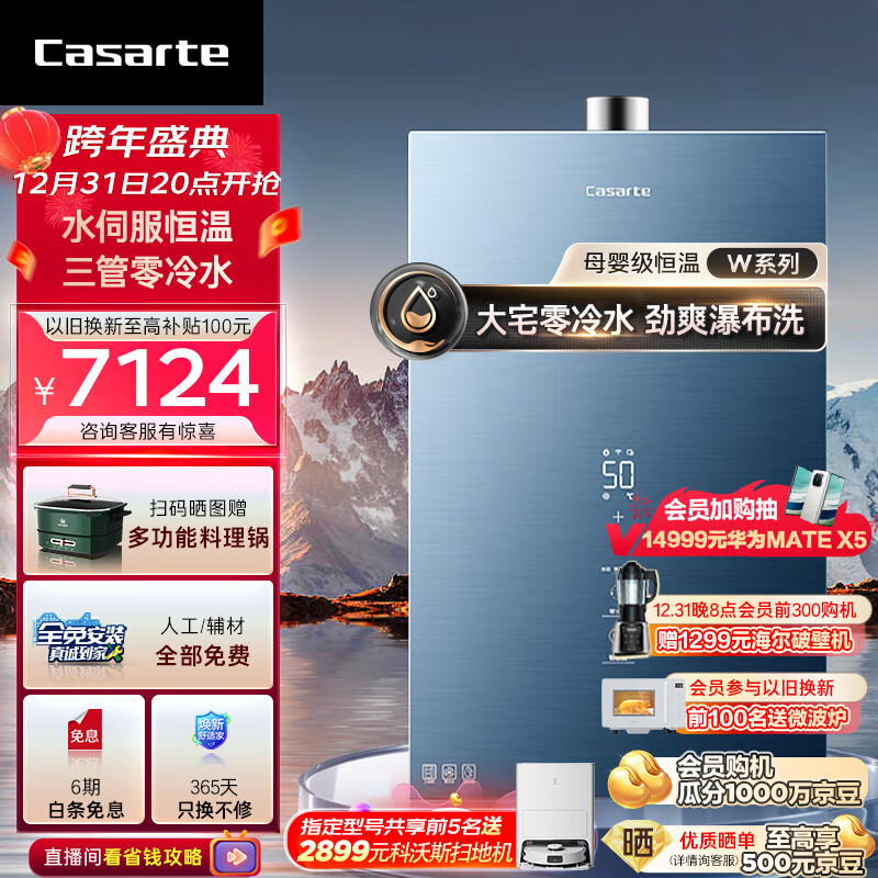 卡萨帝(Casarte)鉴赏家20升家用燃气热水器天然气母婴级恒温三管零冷水静音水伺服增压下置风机JSQ38-20CWS(12T)U1价格:7499.00元!