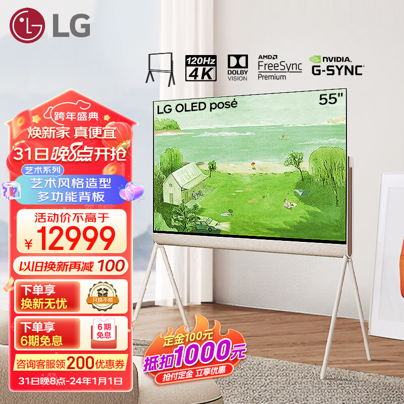 LG 55英寸 OLED 艺术支架套装 AI音画芯片 艺术画廊电视Pose 带收纳可壁挂 55LX1QPCA价格:12999.00元!