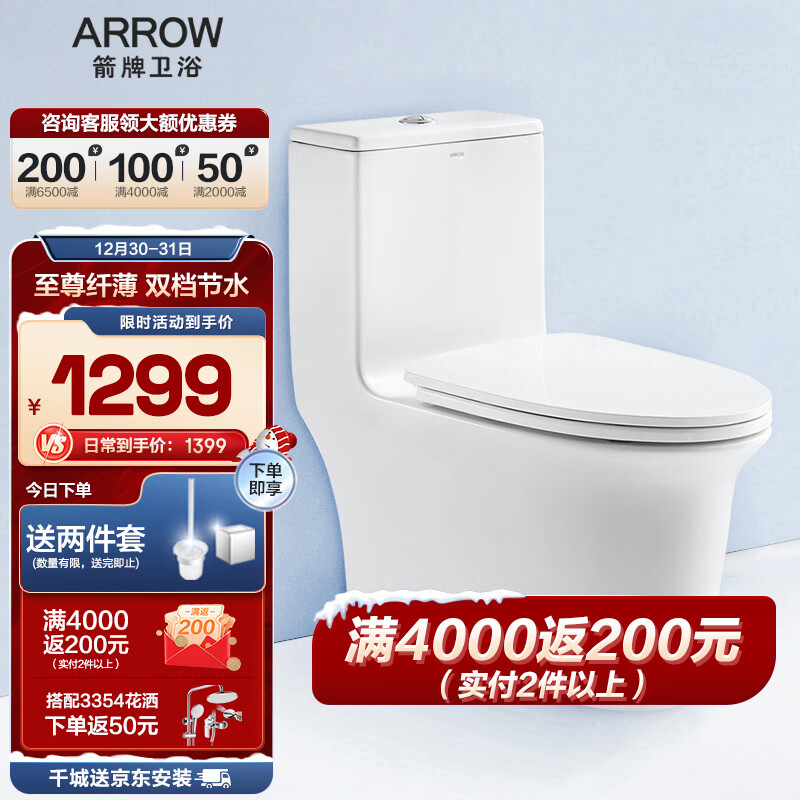 箭牌(ARROW)虹吸马桶家用节水坐便器普通座便抽水坐厕大冲力 豪华纤薄AE1021L价格:1999.00元!