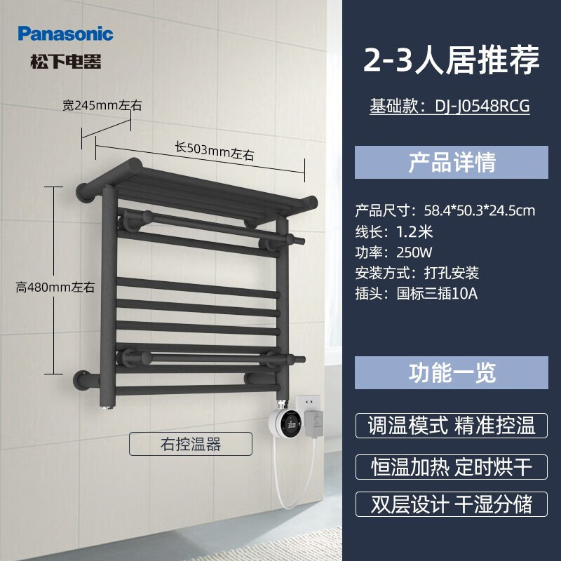 松下(Panasonic)电热毛巾架 卫生间浴室防潮置物架智能毛巾加热架烘干DJ-J0548RCG价格:1349.00元!