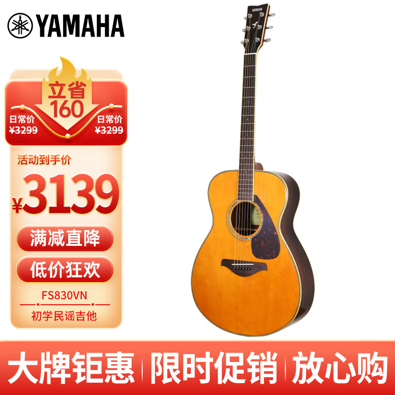 雅马哈(YAMAHA)FS830VN 北美型号 实木单板 初学者民谣吉他40英寸吉它亮光复古色价格:3299.00元!