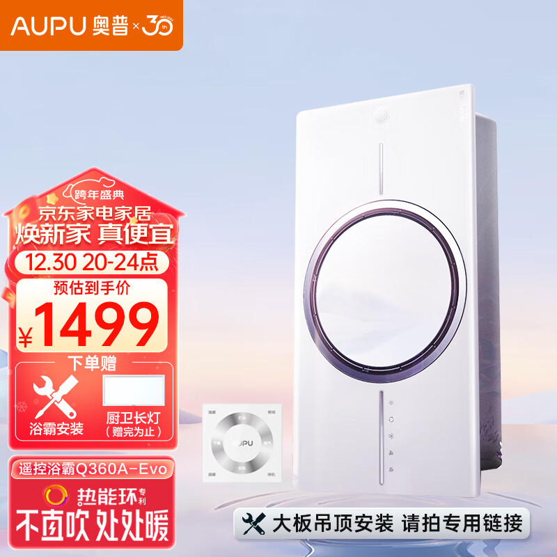 奥普(AUPU)浴霸Q360A-Evo热能环风暖浴霸遥控开关外接照明(非大板安装SKU)价格:1699.00元!