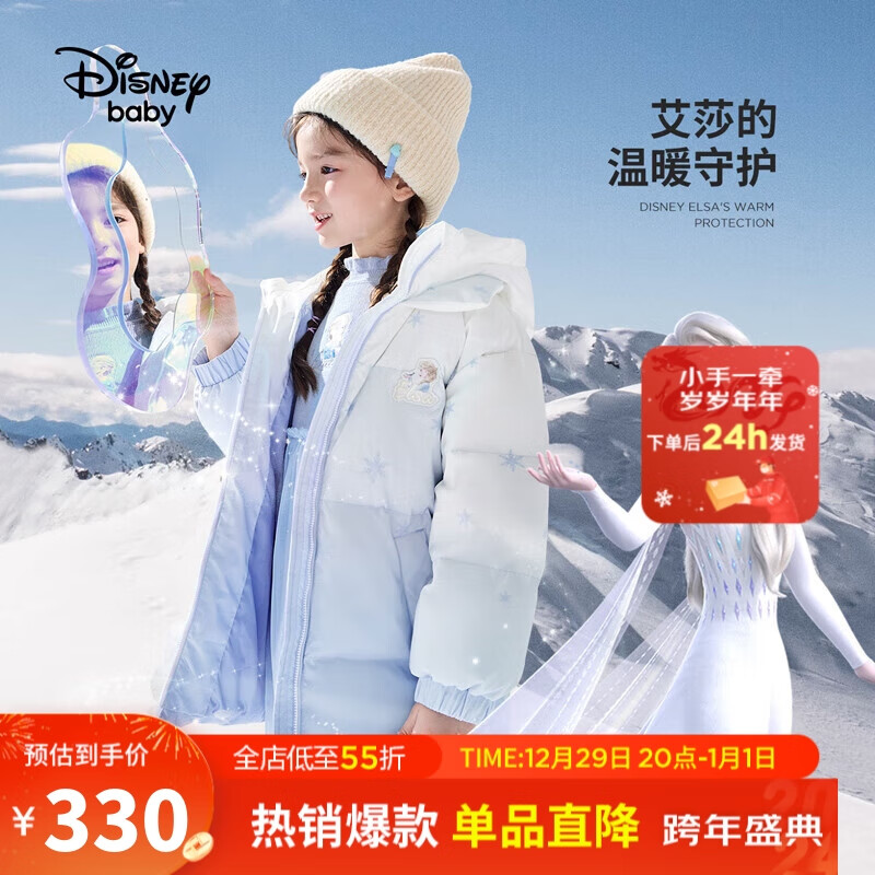 迪士尼(DISNEY)童装儿童女童假两件连帽羽绒服中长保暖外套23冬DB341KE54蓝140价格:599.90元!