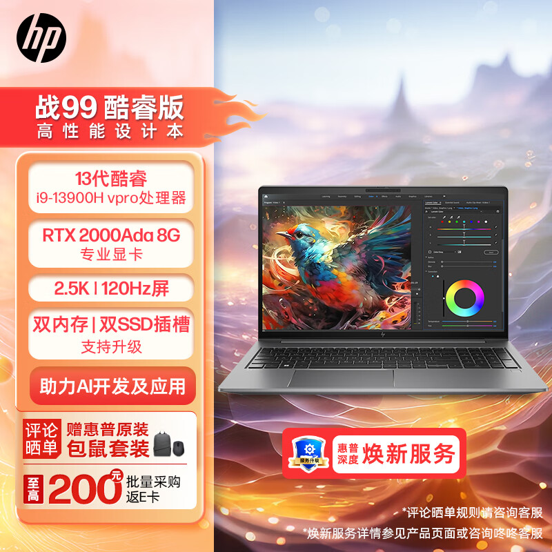 惠普(HP)战99 23款全新15.6英寸高性能笔记本电脑设计师本工作站?i9-13900H vpro 32G 1TSSD RTX2000Ada 2.5K屏价格:16999.00元!