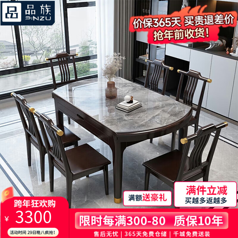 品族岩板餐桌椅组合伸缩折叠新中式简约小户型家用可变圆桌吃饭桌子价格:4500.00元!