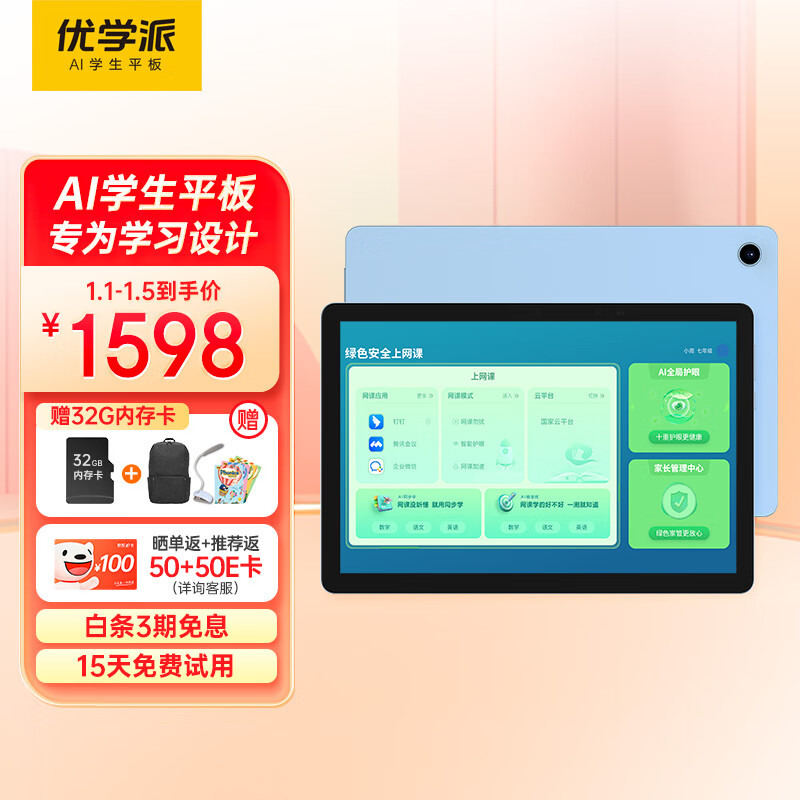 优学派学习机E16(128G)10.1英寸 护眼学生平板电脑 智能语音问答家教机小学初中高中辅导英语点读机 价格:1598.00元!