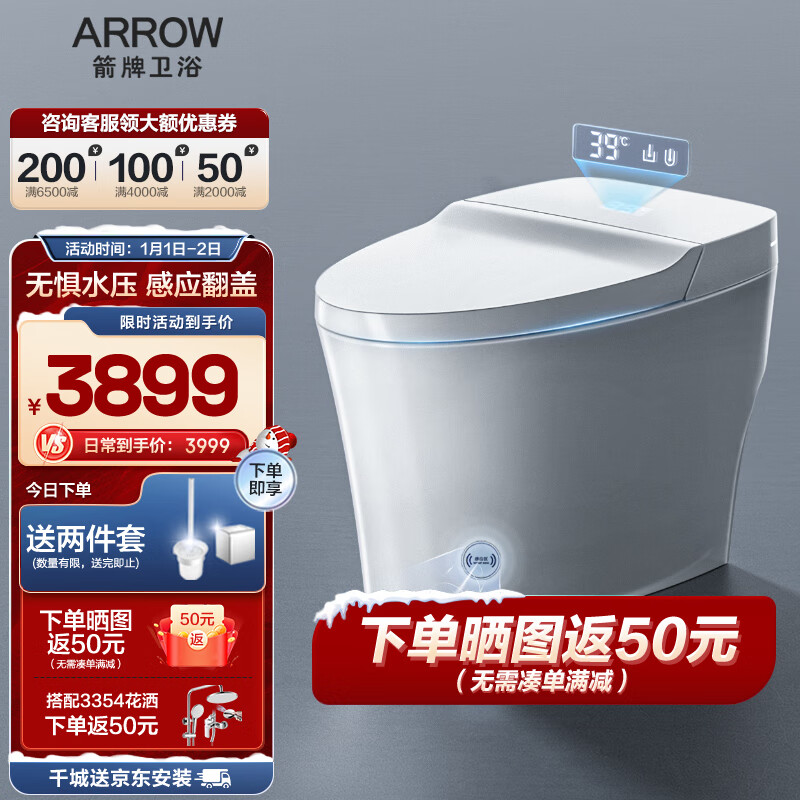 箭牌(ARROW)智能马桶恒温座圈按摩加热坐便器 低水压脚感翻盖翻圈AKE1135L价格:6427.00元!