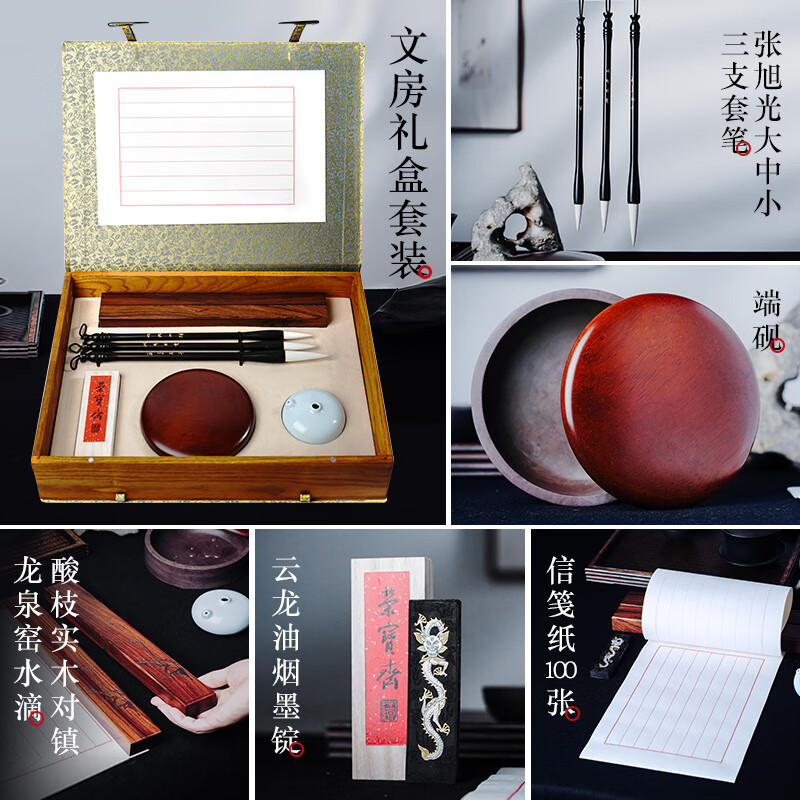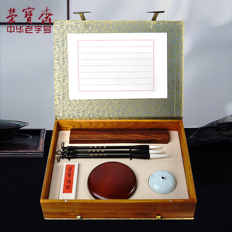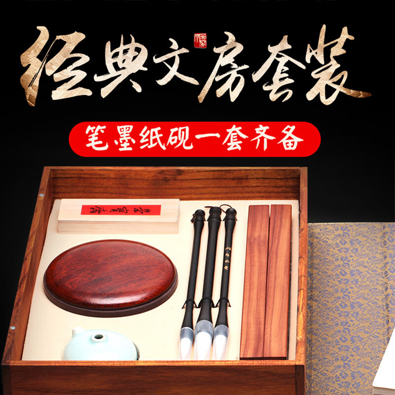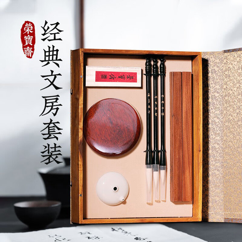 荣宝斋 文房四宝套装 文人雅客 笔墨纸砚镇尺水滴套装 书法国画毛笔墨锭砚台 精选礼盒装价格:899.00元!