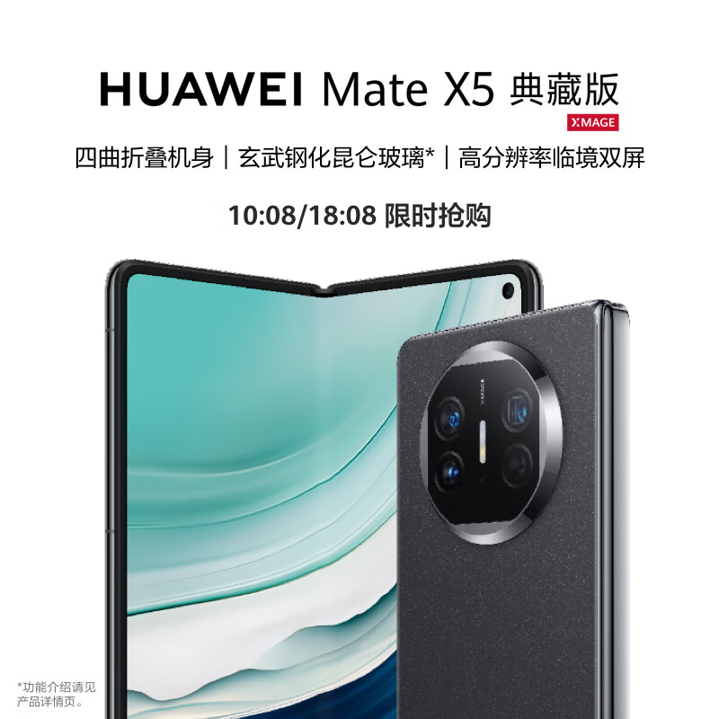 华为(HUAWEI) Mate X5 典藏版 折叠屏手机 16GB+1TB 羽砂黑价格:16999.00元!