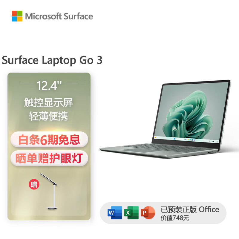 微软(Microsoft)Surface Laptop Go 3?笔记本电脑?i5 8G+256G仙茶绿?12.4英寸触屏 办公本 学生 轻薄本价格:6388.00元!